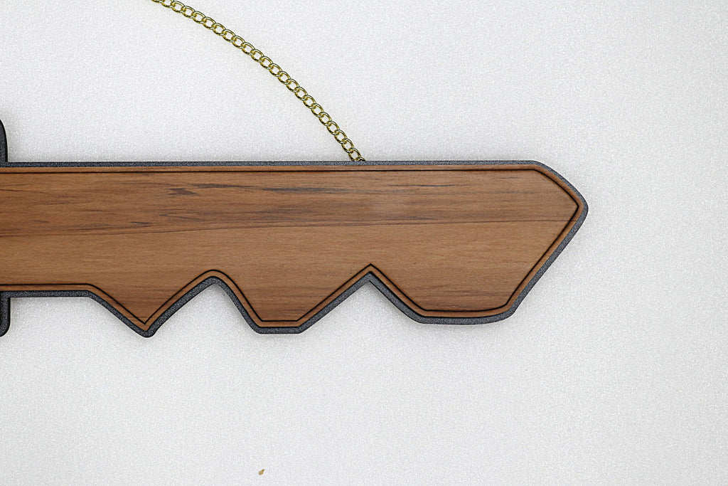 The key is crafted from recycled Native New Zealand Rimu veneerboard and medium density fibreboard (mdf)