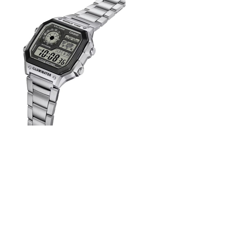 Case / bezel material: Resin Triple-fold Clasp Stainless Steel Band Resin Glass 100-meter water resistance LED lightSelectable illumination duration, afterglow Multi Time (4 different cities) World time31 time zones (48 cities + coordinated universal time), daylight saving on/off, Home city/World time city swapping 1/100-second stopwatchMeasuring capacity: 23:59'59.99''Measuring modes: Elapsed time, split time, 1st-2nd place times Countdown timerMeasuring unit: 1/10 secondInput range: 1 second to 24 hours (1-second increments, 1-minute increments and 1-hour increments) 5 daily or one-time alarms Hourly time signal Full auto-calendar (to year 2099) 12/24-hour format Button operation tone on/off Regular timekeeping: Hour, minute, second, pm, month, date, day Accuracy: ±30 seconds per month Approx. battery life: 10 years on CR2025 Size of case : 45×42.1×12.5mm Total weight : 91g 2 years warranty