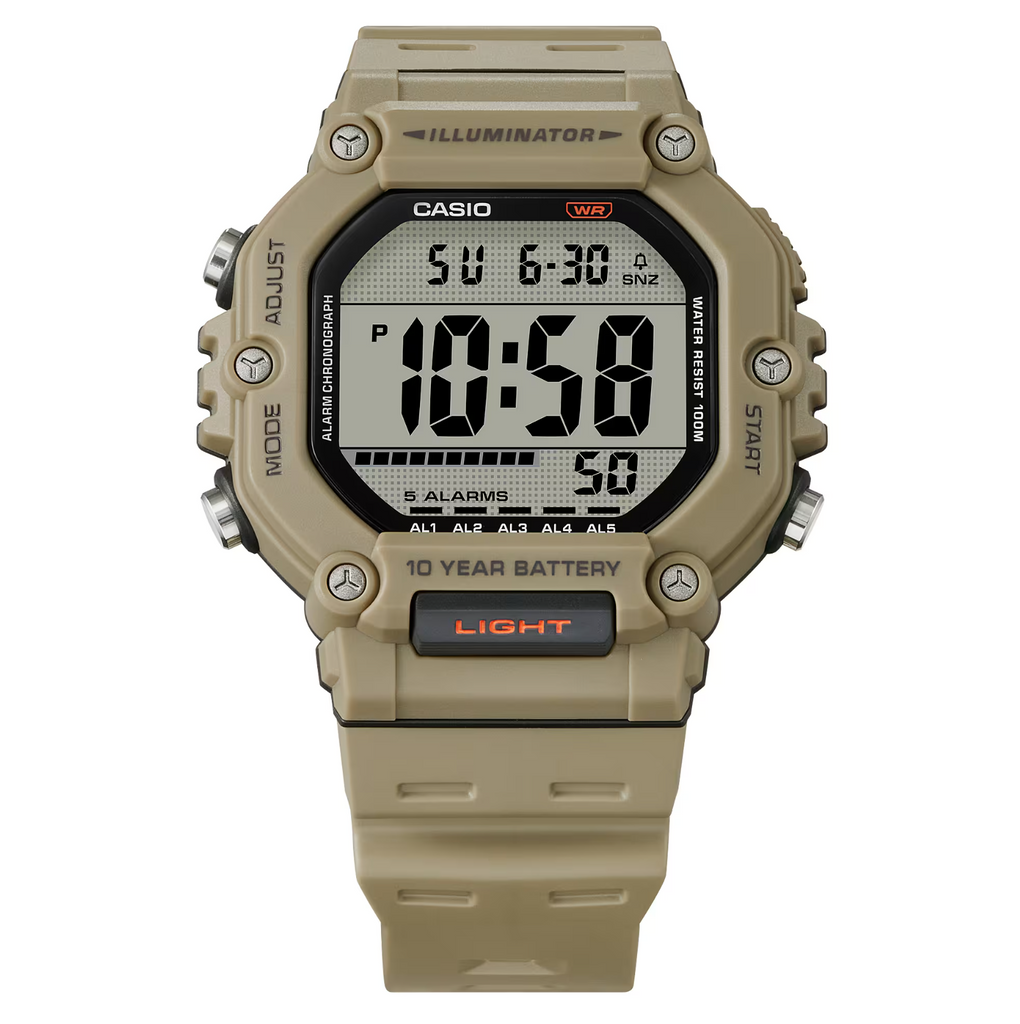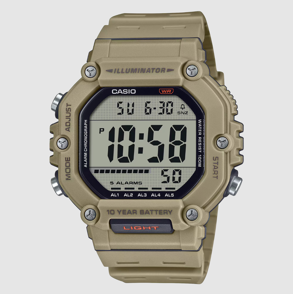 Easily access the LED light from a button on front of the case for even easier use. With 100-meter water resistance and 10-year battery life, you won’t have to worry about this watch for ages.