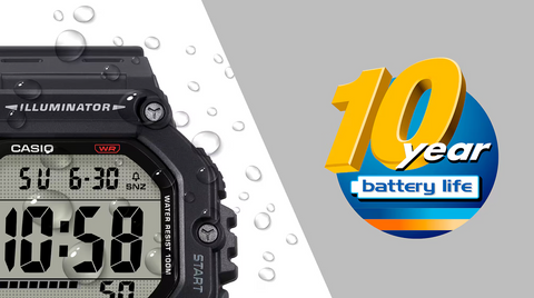 Easily access the LED light from a button on front of the case for even easier use. With 100-meter water resistance and 10-year battery life, you won’t have to worry about this watch for ages.