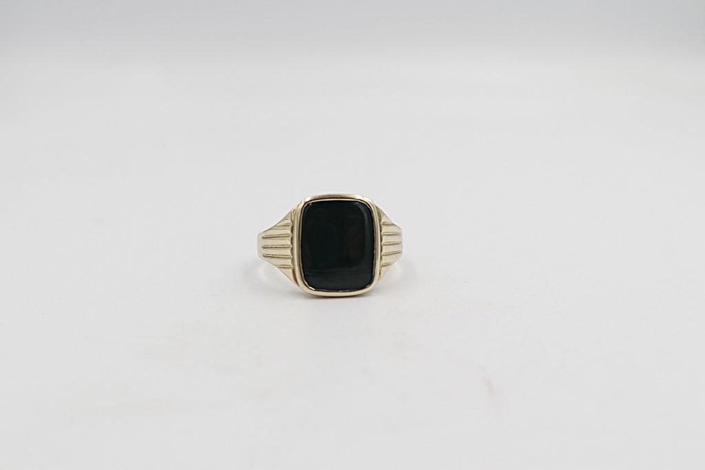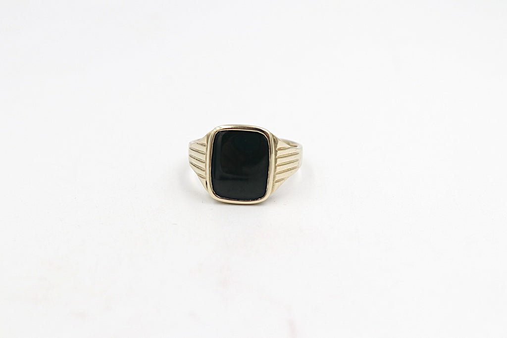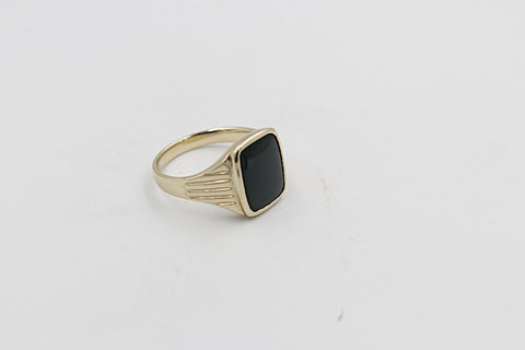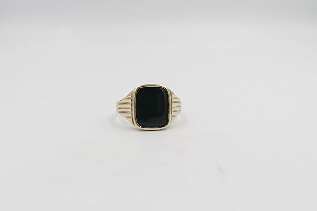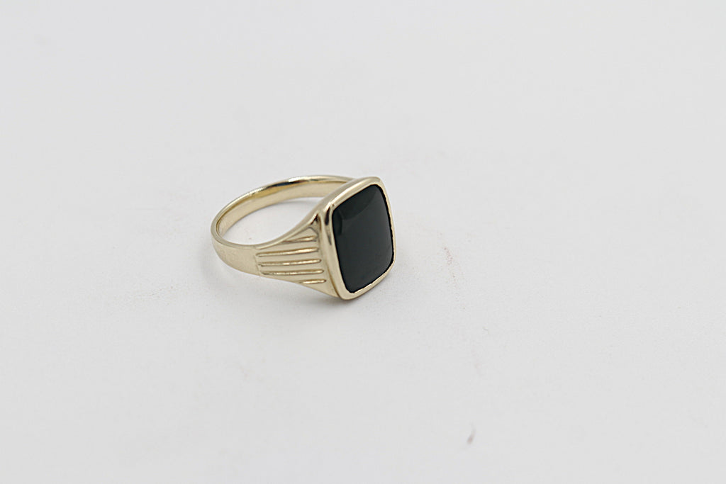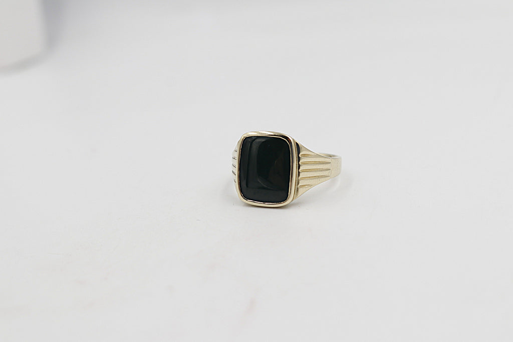 9ct Gold Mens Solid Dark Greenstone Ring SYR3066