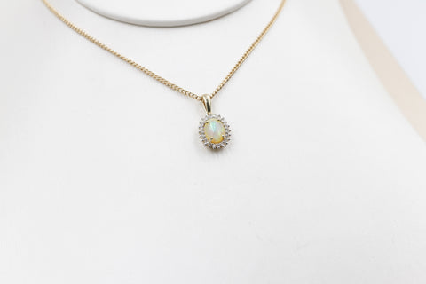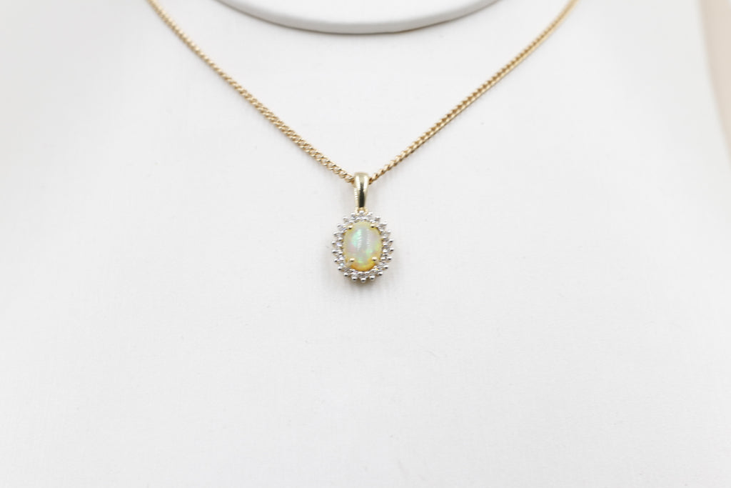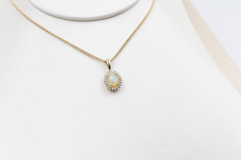 10K Gold Full Opal with Diamonds Pendent