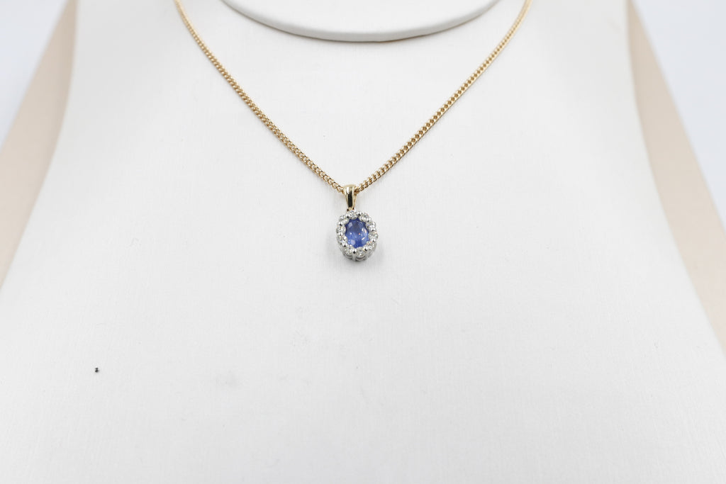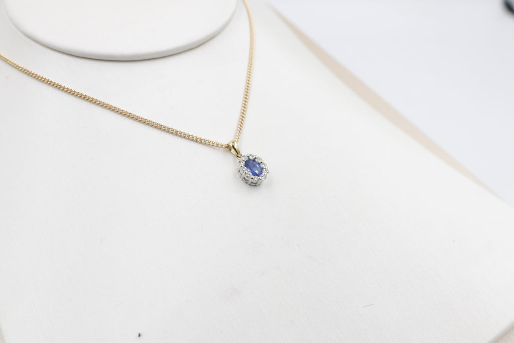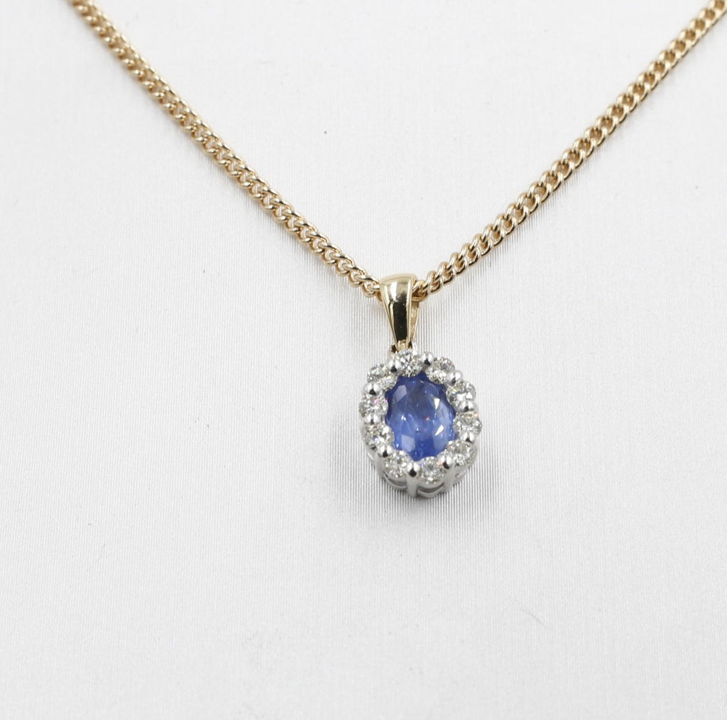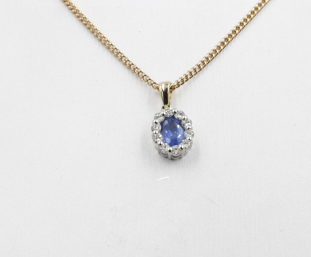 18ct Gold Ceylon sapphire and Diamond Pendent