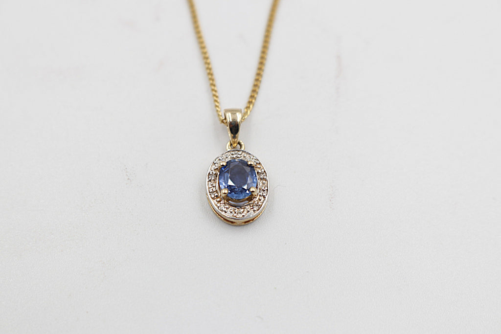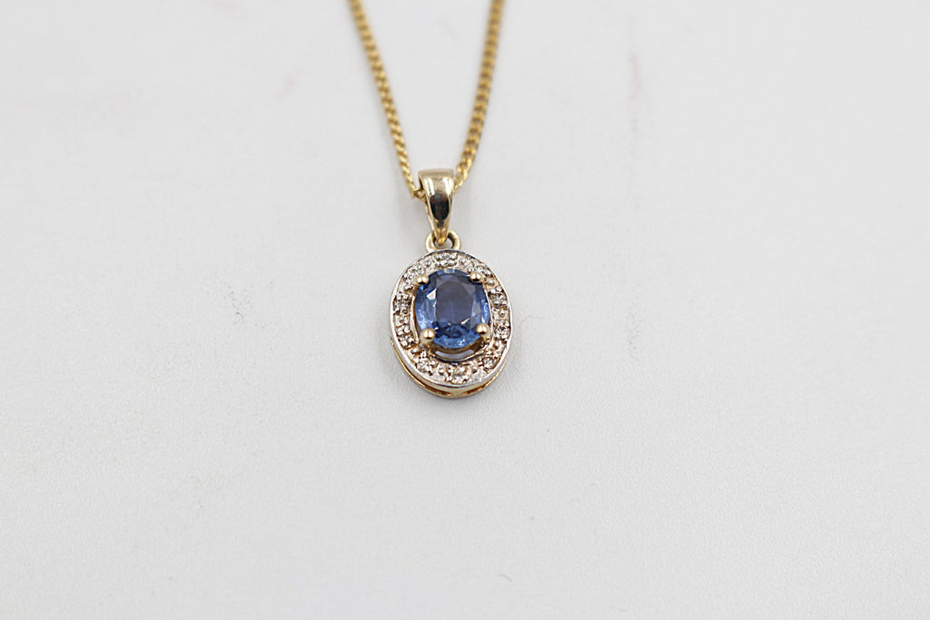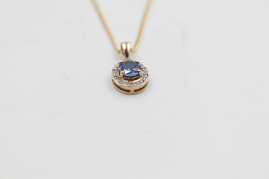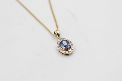 9ct Gold Ceylon Sapphire & Diamond Pendent SYP731