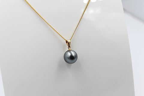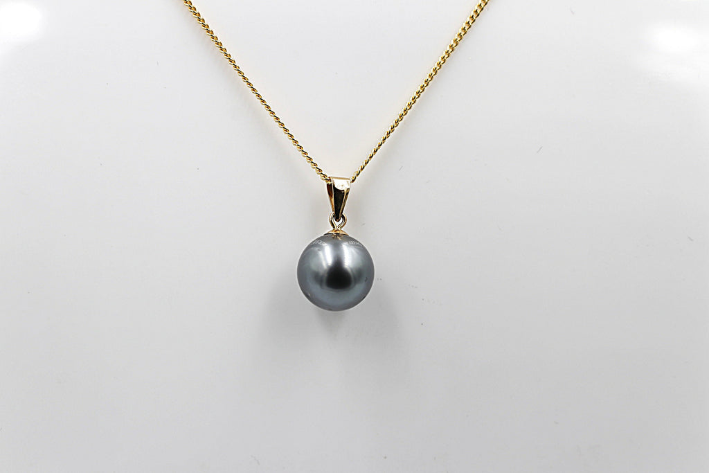 9ct Gold Set tahitian Black Pearl 10mm SP04