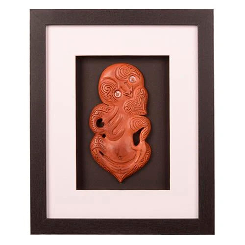 This exceptional quality Māori wood carving has been mounted permanently in this shadow box frame to display this kiwiana art for all to appreciate.