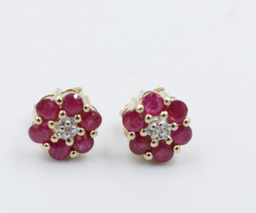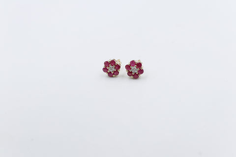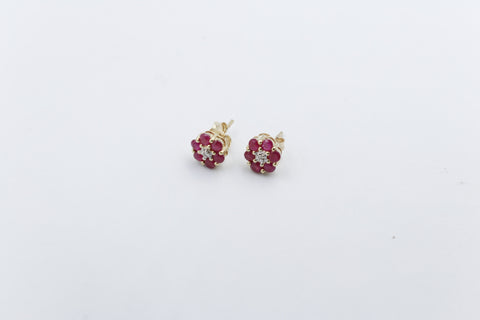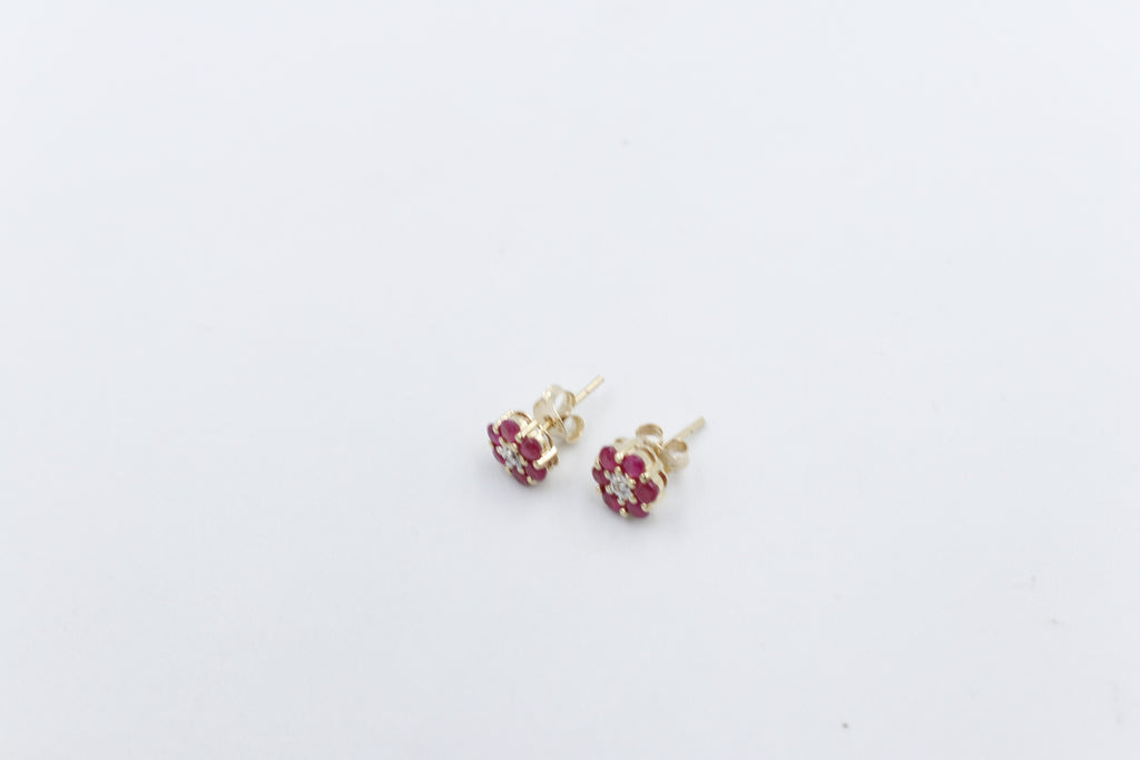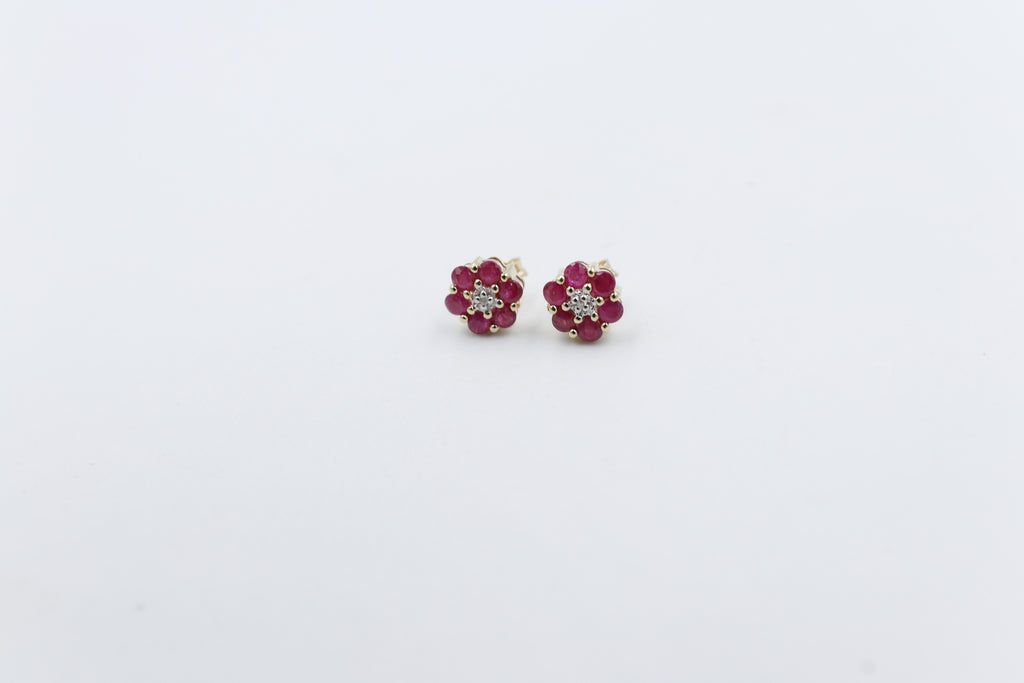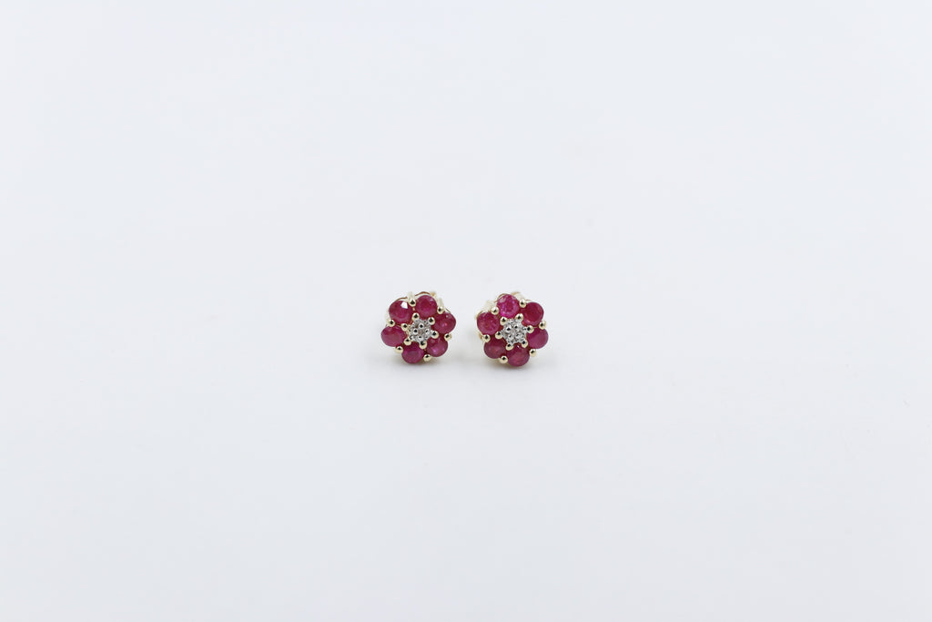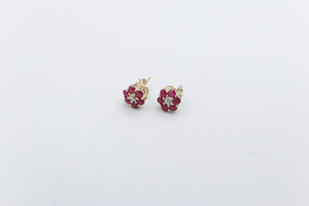 9ct Gold Genuine Ruby Cluster Earrings SJ5ET0022-RUDI
