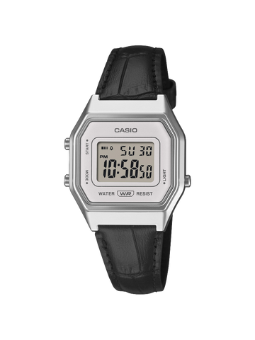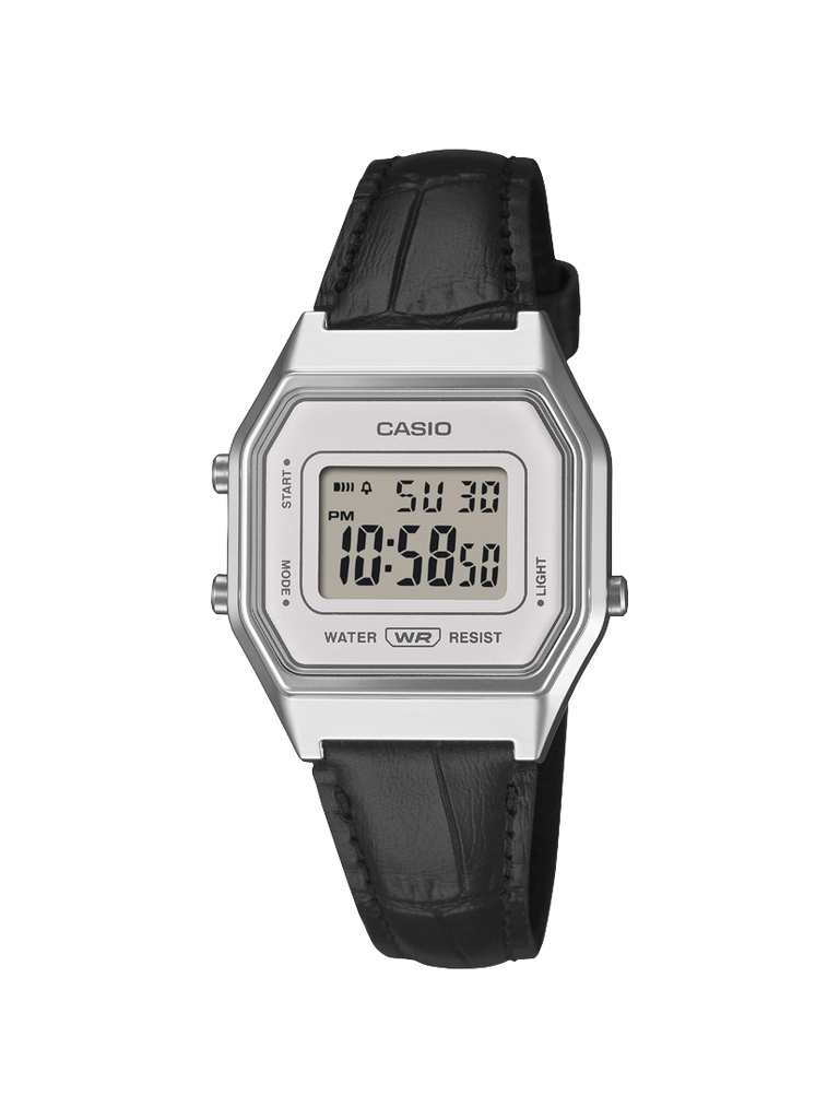 Make a sophisticated statement — the digital LA680WEL with a classic embossed leather band. The distinctively streamlined face of the digital LA680 is all about vintage luxury. Finished in soft, gentle hues, the color of the watch face pairs perfectly with a silver-colored case to project sophisticated elegance.