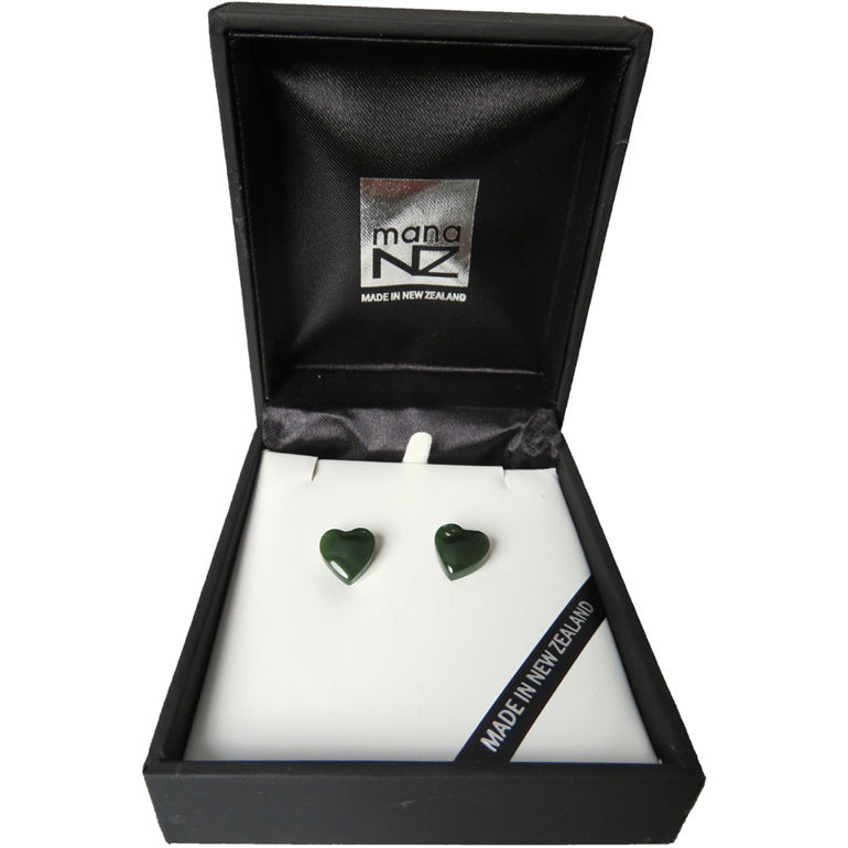 Small New Zealand Greenstone heart stud earrings that match beautifully with the greenstone heart pendant.