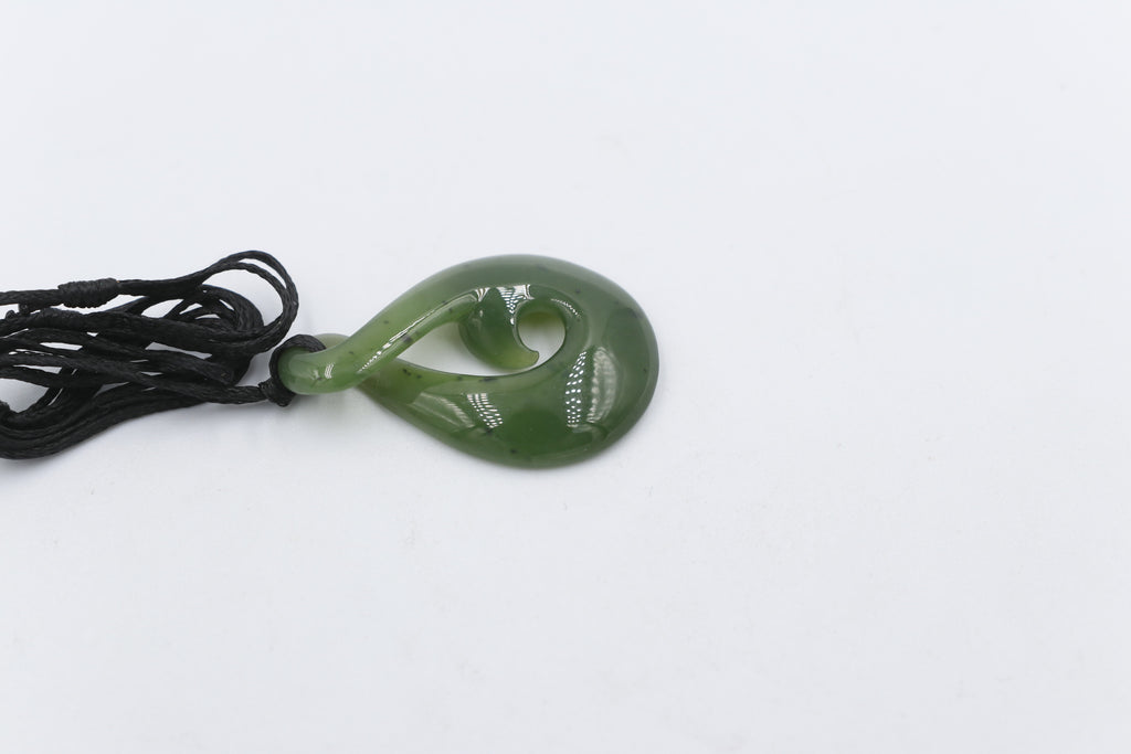 The spiral is a Koru, represents the fern found as it opens bringing new life and purity to the world. It also represents peace, tranquility and spirituality along with a strong sense of regrowth or new beginnings. The Koru is also often associated with nurturing so when interlocked with others is frequently used to represent the strength and purity of a loving relationship with family.