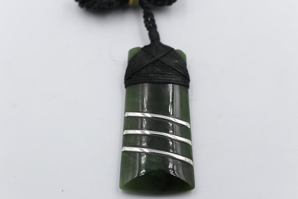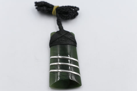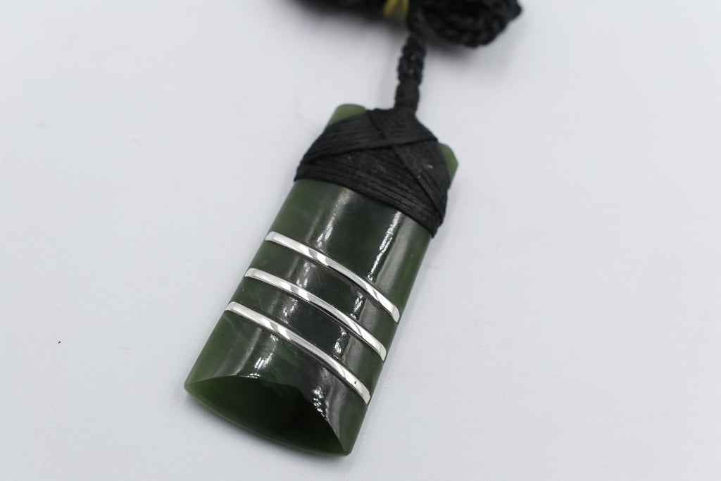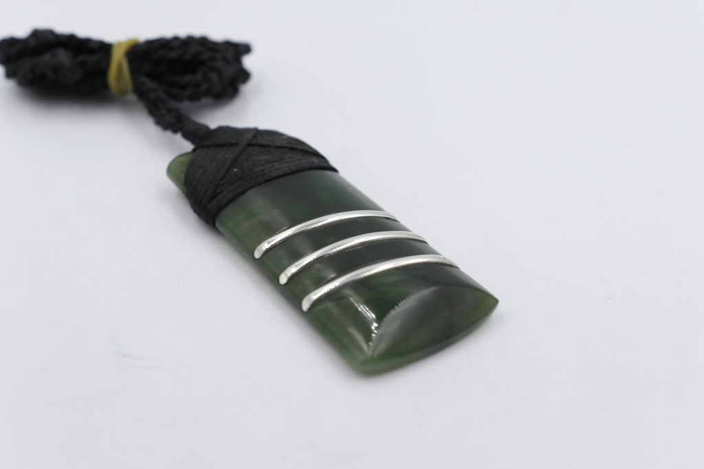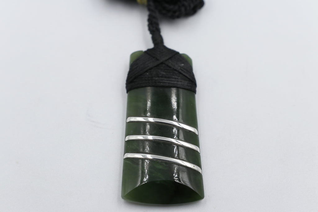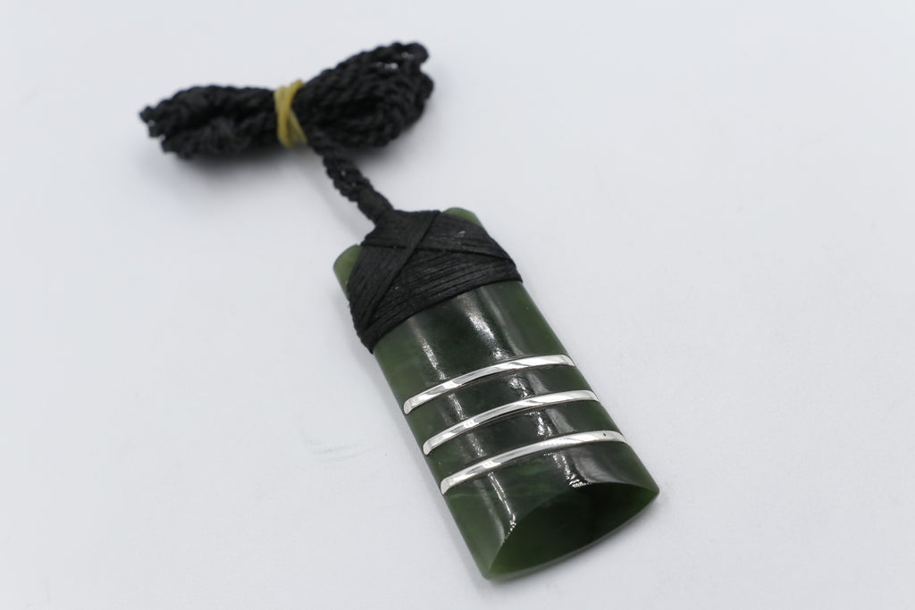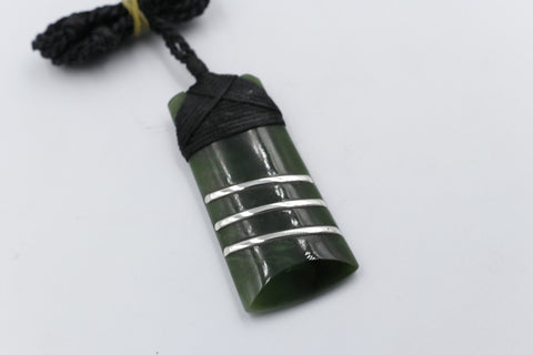 New Zealand Greenstone Toki set with Stg Silver Lines
