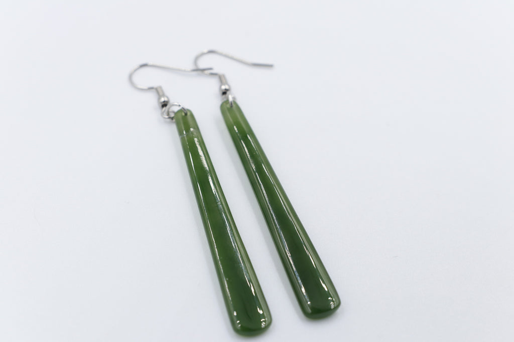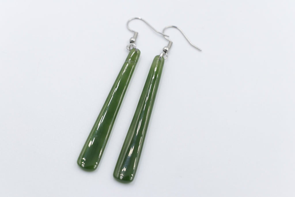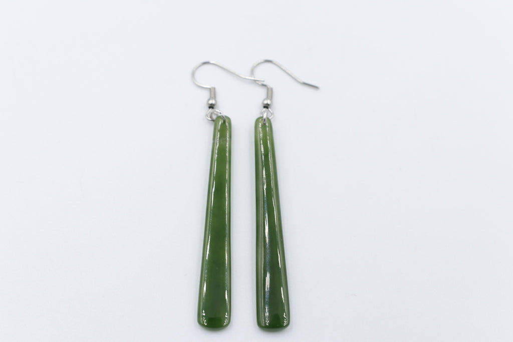 NZ Greenstone Slim Drop Earrings WRE98
