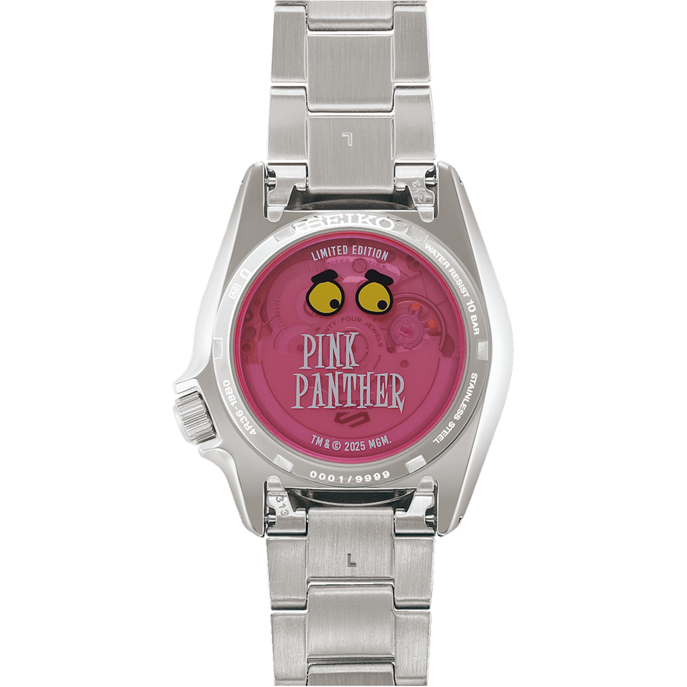 Pink Panther Limited Edition 9,999 pieces worldwide. Special Box. Additional Nylon Strap. Special custom boxing. Serial number selection not possible as watches are sent at random worldwide.